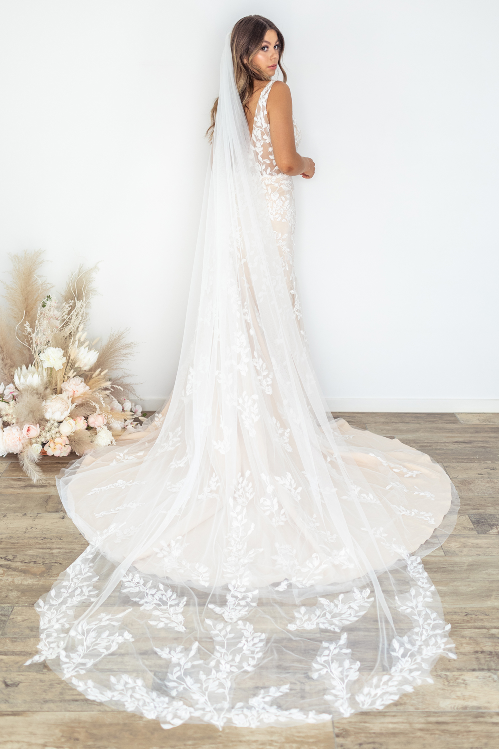 After trying on over 18 dresses at other stores, I couldn’t find anything that suited. Plus all of the stores had very large dresses and no option to try on my actual size. I came across Goddess By Nature on Instagram, and flew to Brisbane and made an appointment with my Bridesmaids at GBN. The dresses there were all in my size, which was a huge help. They all fit me like a glove. I fell in love with two. The bottom part of the Eliza gown and the top part of the Breanna gown. I asked GBN if they could merge the two, and they said they could. This is how my Goddess By Nature Melanie gown came to be. There was another dress from another designer that looked very similar to what I wanted, however after terrible service at other dress stores and amazing service at Goddess By Nature, I wanted them to be the ones to make my gown.