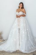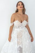 Our Goddess By Nature Bridal Gowns come with built in bra cups, so there is no need to worry about wearing a bra! However if you’re on the bustier side, we often suggest wearing a stick-on bra with the help of the bra cups to keep everything in place.