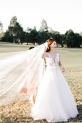 The Lydia bride is fun-loving and sweet, and loves the swish feeling of tulle by her feet. Our Lydia bridal gown is mesmerizing in design… perhaps it’s the daringly low neckline plunging to the waist, or the six layers of dreamy soft tulle that makes our hearts flutter every time we see it. A bridal gown fit for a twirl. Lydia features a sheer tulle bodice with a plunging neckline and sides, decorated with gorgeous embellished lace appliqués. From the waist are four incredibly soft, light and airy layers of tulle – lined by a silk skirt. Lydia is the belle of the ball. A dream come true.